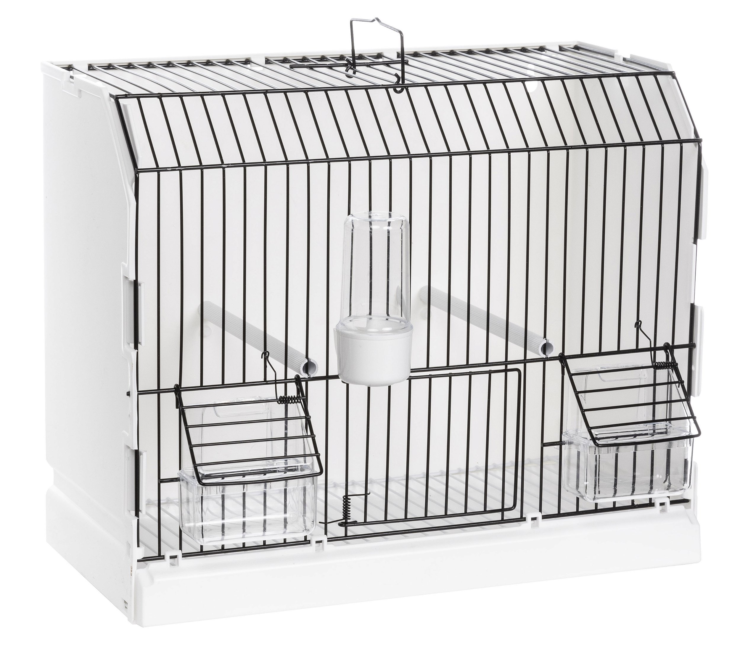 Gaiola com estrutura confeccionada em plastico branco de alta qualidade, tipo exposição na Europa com grades em pintura epoxi na cor preta com bebedouro e comedouros incluídos, ideal para preparação dos pássaros para campeonatos.